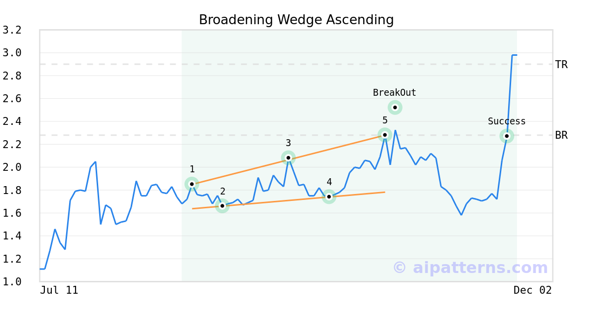 On October 16, 2025, A.I.dvisor detected a Broadening Wedge Ascending Pattern (Bullish) for Planet Green Holdings Corp (PLAG, $2.28). On October 20, 2025, A.I.dvisor confirmed the Bullish pattern, setting a target price of $2.90. 30 days later, on November 19, 2025, PLAG reached the target price resulting in a for traders who took a long position in the stock.