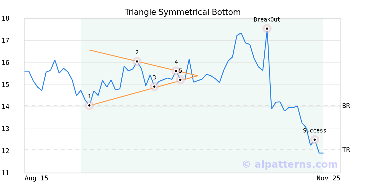 On October 07, 2025, A.I.dvisor detected a Triangle Symmetrical Bottom Pattern (Bearish) for CPI Card Group (PMTS, $15.21). 27 days later, on November 03, 2025, A.I.dvisor confirmed the Bearish pattern, setting a target price of the stock. On November 18, 2025, the stock hit the target price of $12.06 – resulting in a +1 gain for traders who shorted the stock on the pattern detection date.