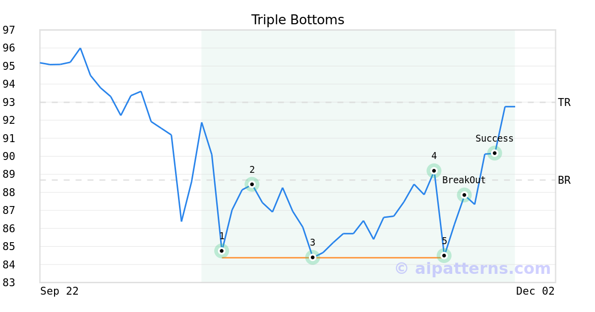 On November 17, 2025, A.I.dvisor detected a Triple Bottoms Pattern (Bullish) for Pinnacle Financial Partners (PNFP, $84.48). On November 19, 2025, A.I.dvisor confirmed the Bullish pattern, setting a target price of $92.99. 5 days later, on November 24, 2025, PNFP reached the target price resulting in a for traders who took a long position in the stock.