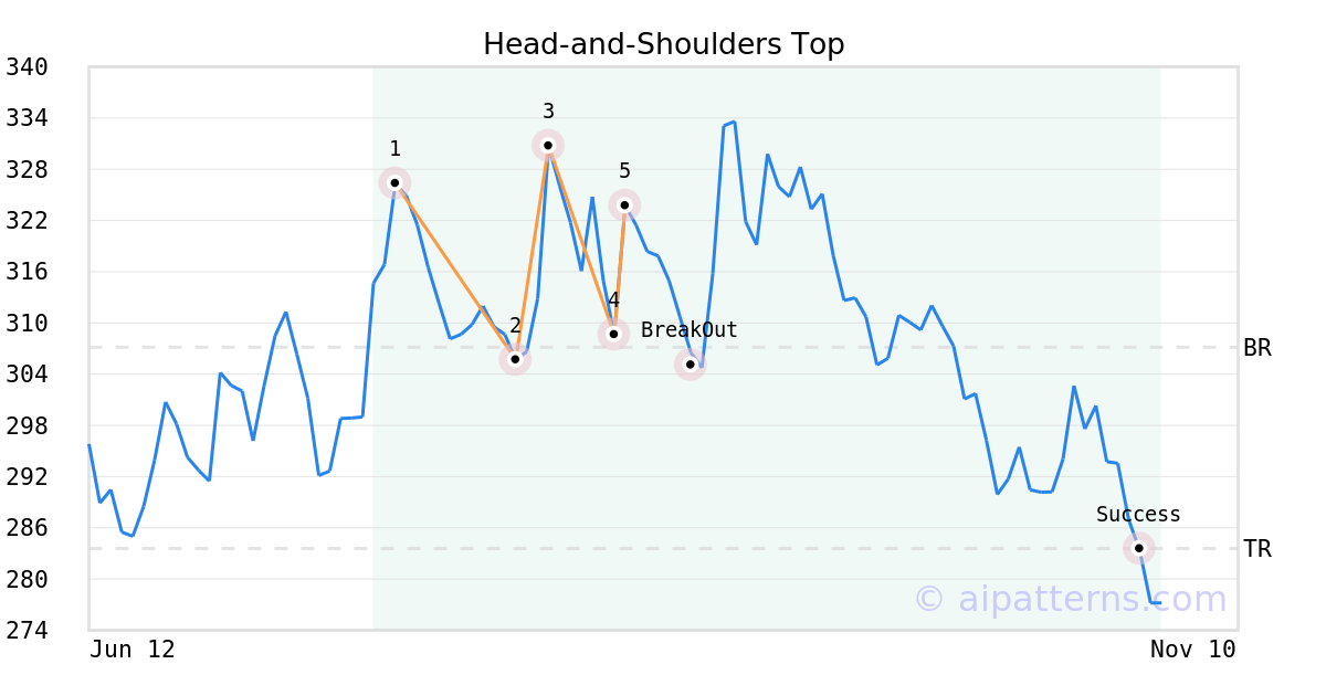 On August 22, 2025, A.I.dvisor detected a Head-and-Shoulders Top Pattern (Bearish) for Pool Corp (POOL, $323.73). 11 days later, on September 02, 2025, A.I.dvisor confirmed the Bearish pattern, setting a target price of the stock. On October 29, 2025, the stock hit the target price of $283.58 – resulting in a +1 gain for traders who shorted the stock on the pattern detection date.