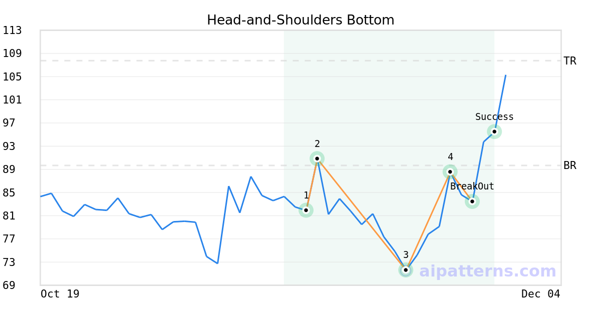 On November 27, 2025, A.I.dvisor detected a Head-and-Shoulders Bottom Pattern (Bullish) for Quant cryptocurrency (QNT.X, $83.396320). On November 27, 2025, A.I.dvisor confirmed the Bullish pattern, setting a target price of $107.750000. 2 days later, on November 29, 2025, QNT.X reached the target price resulting in a +1 for traders who took a long position in the stock.