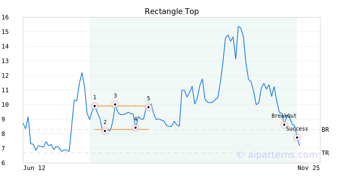 On August 22, 2025, A.I.dvisor detected a Rectangle Top Pattern (Bearish) for Red Cat Holdings (RCAT, $9.82). 76 days later, on November 06, 2025, A.I.dvisor confirmed the Bearish pattern, setting a target price of the stock. On November 13, 2025, the stock hit the target price of $6.69 – resulting in a +2 gain for traders who shorted the stock on the pattern detection date.