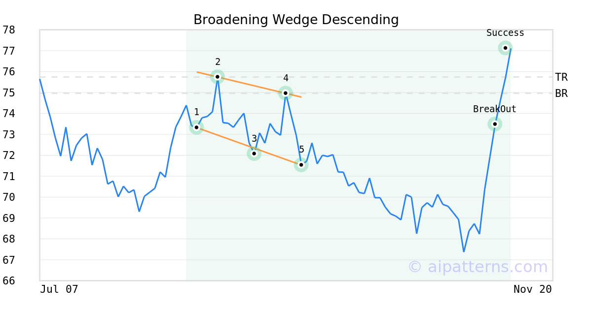 On September 16, 2025, A.I.dvisor detected a Broadening Wedge Descending Pattern (Bullish) for Safety Insurance Group (SAFT, $71.53). On November 06, 2025, A.I.dvisor confirmed the Bullish pattern, setting a target price of $75.74. 4 days later, on November 10, 2025, SAFT reached the target price resulting in a for traders who took a long position in the stock.