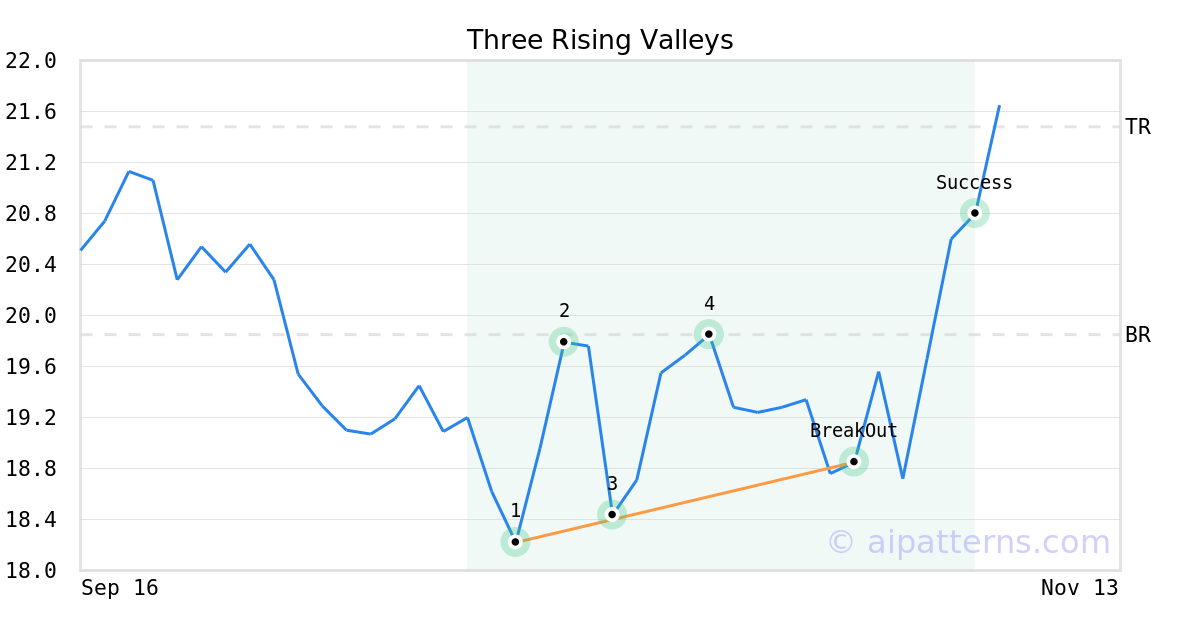 On October 30, 2025, A.I.dvisor detected a Three Rising Valleys Pattern (Bullish) for SB Financial Group (SBFG, $18.85). On October 30, 2025, A.I.dvisor confirmed the Bullish pattern, setting a target price of $21.48. 7 days later, on November 06, 2025, SBFG reached the target price resulting in a +1 for traders who took a long position in the stock.