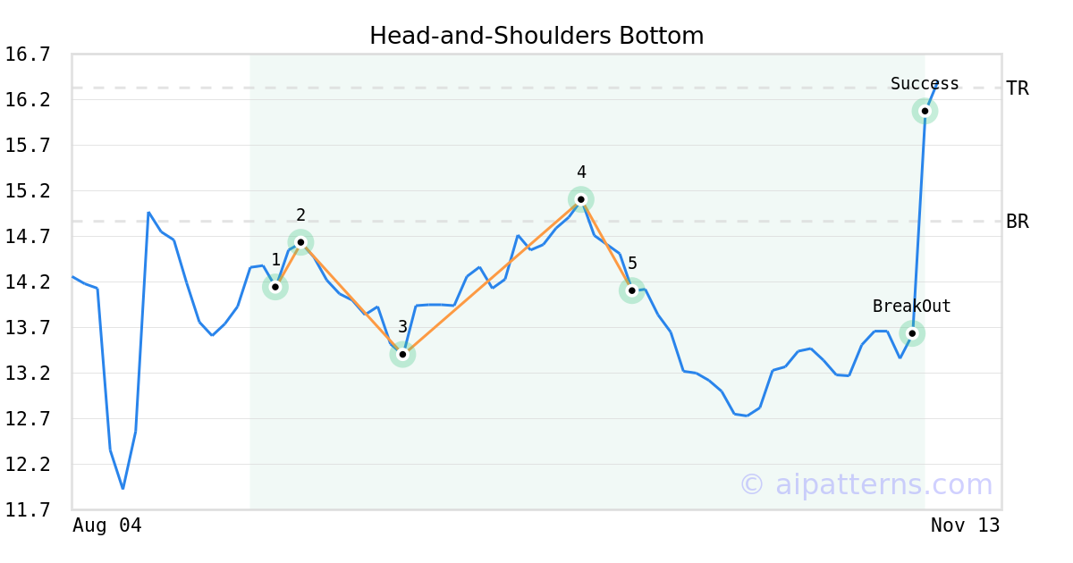 On October 06, 2025, A.I.dvisor detected a Head-and-Shoulders Bottom Pattern (Bullish) for Sinclair (SBGI, $14.10). On November 05, 2025, A.I.dvisor confirmed the Bullish pattern, setting a target price of $16.33. 1 day later, on November 06, 2025, SBGI reached the target price resulting in a +1 for traders who took a long position in the stock.