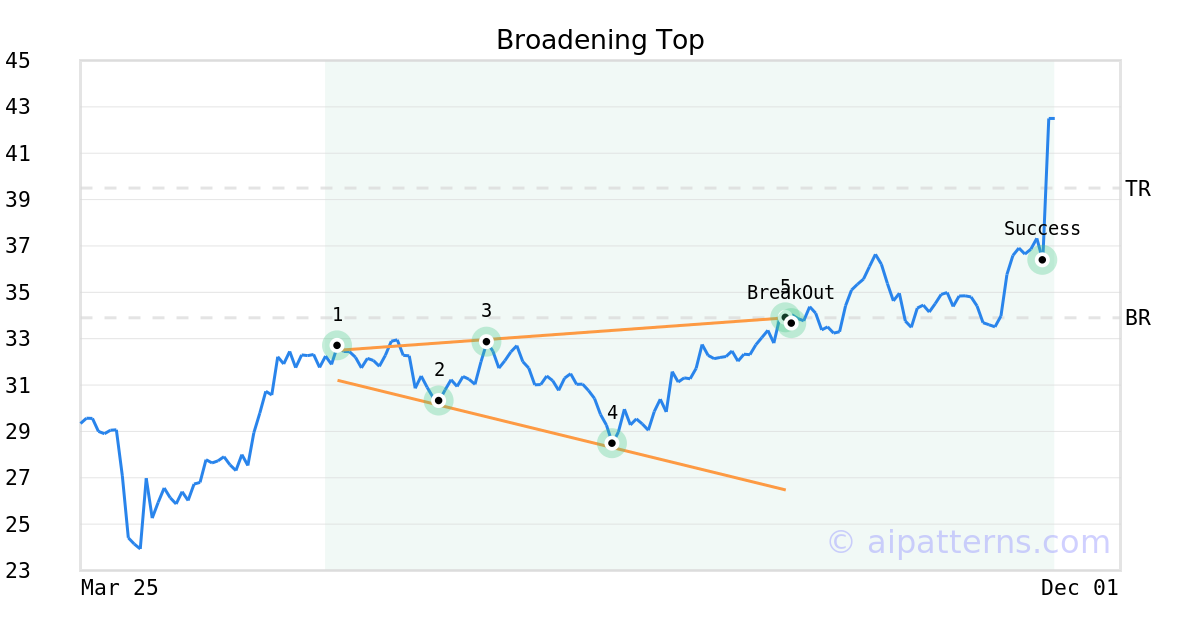 On September 12, 2025, A.I.dvisor detected a Broadening Top Pattern (Bullish) for Sealed Air Corp (SEE, $33.90). On September 15, 2025, A.I.dvisor confirmed the Bullish pattern, setting a target price of $39.50. 58 days later, on November 12, 2025, SEE reached the target price resulting in a for traders who took a long position in the stock.