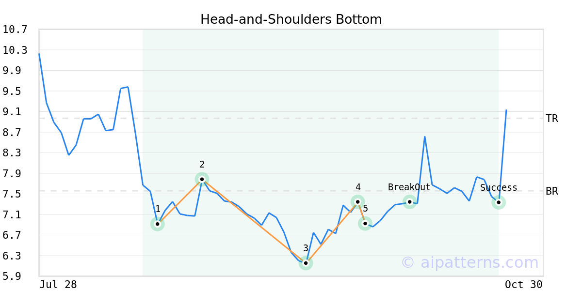 On September 29, 2025, A.I.dvisor detected a Head-and-Shoulders Bottom Pattern (Bullish) for Sagimet Biosciences (SGMT, $6.92). On October 07, 2025, A.I.dvisor confirmed the Bullish pattern, setting a target price of $8.97. 16 days later, on October 23, 2025, SGMT reached the target price resulting in a for traders who took a long position in the stock.
