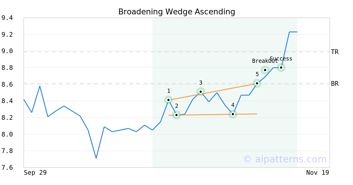 On November 07, 2025, A.I.dvisor detected a Broadening Wedge Ascending Pattern (Bullish) for Seanergy Maritime Holdings Corp (SHIP, $8.61). On November 10, 2025, A.I.dvisor confirmed the Bullish pattern, setting a target price of $8.99. 2 days later, on November 12, 2025, SHIP reached the target price resulting in a for traders who took a long position in the stock.