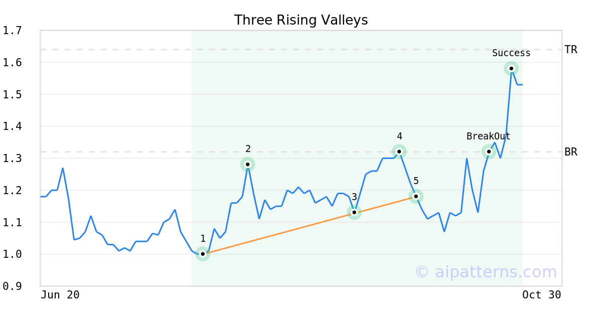 On September 25, 2025, A.I.dvisor detected a Three Rising Valleys Pattern (Bullish) for SKYX Platforms Corp (SKYX, $1.18). On October 14, 2025, A.I.dvisor confirmed the Bullish pattern, setting a target price of $1.64. 6 days later, on October 20, 2025, SKYX reached the target price resulting in a +3 for traders who took a long position in the stock.