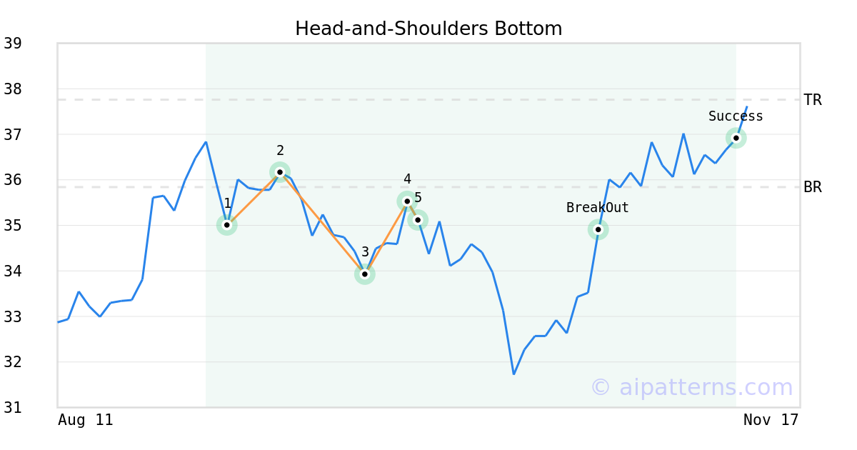 On September 29, 2025, A.I.dvisor detected a Head-and-Shoulders Bottom Pattern (Bullish) for SLB Limited (SLB, $35.11). On October 22, 2025, A.I.dvisor confirmed the Bullish pattern, setting a target price of $37.76. 19 days later, on November 10, 2025, SLB reached the target price resulting in a for traders who took a long position in the stock.