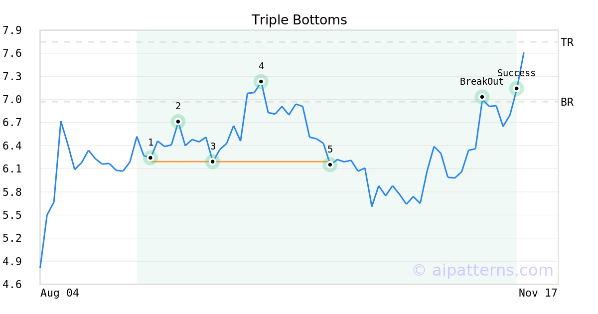 On October 02, 2025, A.I.dvisor detected a Triple Bottoms Pattern (Bullish) for SEACOR Marine Holdings (SMHI, $6.15). On November 03, 2025, A.I.dvisor confirmed the Bullish pattern, setting a target price of $7.75. 7 days later, on November 10, 2025, SMHI reached the target price resulting in a +1 for traders who took a long position in the stock.