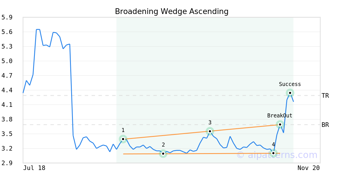 On November 05, 2025, A.I.dvisor detected a Broadening Wedge Ascending Pattern (Bullish) for Sensus Healthcare (SRTS, $3.69). On November 05, 2025, A.I.dvisor confirmed the Bullish pattern, setting a target price of $4.29. 5 days later, on November 10, 2025, SRTS reached the target price resulting in a +1 for traders who took a long position in the stock.