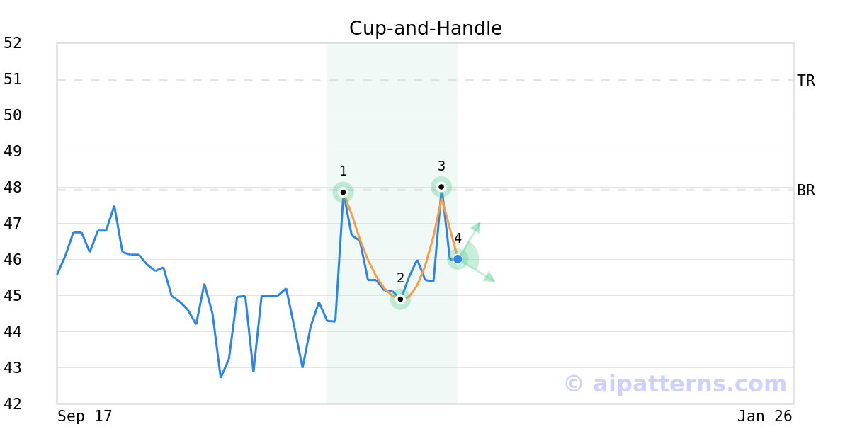 A.I.dvisor detected a bullish Cup-and-Handle pattern for TCI stock. This pattern was detected on November 25, 2025 . The odds of reaching the target price are .