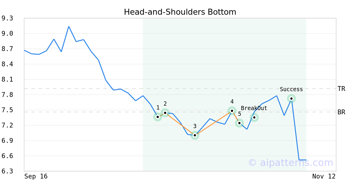 On October 27, 2025, A.I.dvisor detected a Head-and-Shoulders Bottom Pattern (Bullish) for Target Hospitality Corp (TH, $7.24). On October 29, 2025, A.I.dvisor confirmed the Bullish pattern, setting a target price of $7.92. 7 days later, on November 05, 2025, TH reached the target price resulting in a for traders who took a long position in the stock.