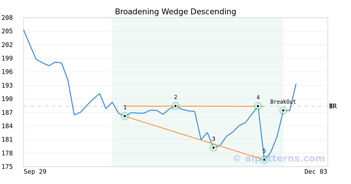 On November 20, 2025, A.I.dvisor detected a Broadening Wedge Descending Pattern (Bullish) for TKO Group Holdings (TKO, $176.49). On November 25, 2025, A.I.dvisor confirmed the Bullish pattern, setting a target price of $188.40. On November 25, 2025, TKO reached the target price resulting in a for traders who took a long position in the stock.