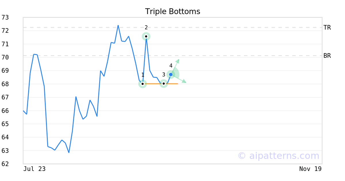TNET may jump back above the lower band and head toward the middle band. Traders may consider buying the stock or exploring call options. In of 40 cases where TNET's price broke its lower Bollinger Band, its price rose further in the following month. The odds of a continued upward trend are .