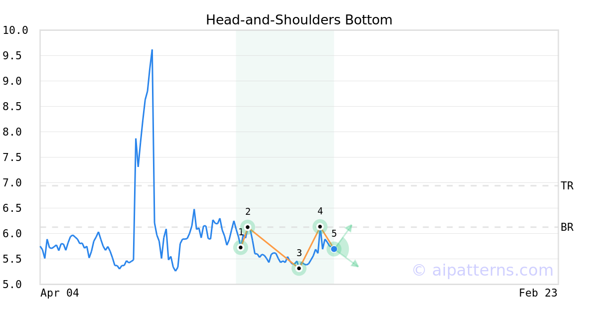 The Tickeron Valuation Rating of (best 1 - 100 worst) indicates that the company is fair valued in the industry. This rating compares market capitalization estimated by our proprietary formula with the current market capitalization. This rating is based on the following metrics, as compared to industry averages: P/B Ratio (0.220) is normal, around the industry mean (86.678). P/E Ratio (2.631) is within average values for comparable stocks, (51.758). Projected Growth (PEG Ratio) (0.000) is also within normal values, averaging (5.036). Dividend Yield (0.000) settles around the average of (0.089) among similar stocks. P/S Ratio (0.319) is also within normal values, averaging (3.606).