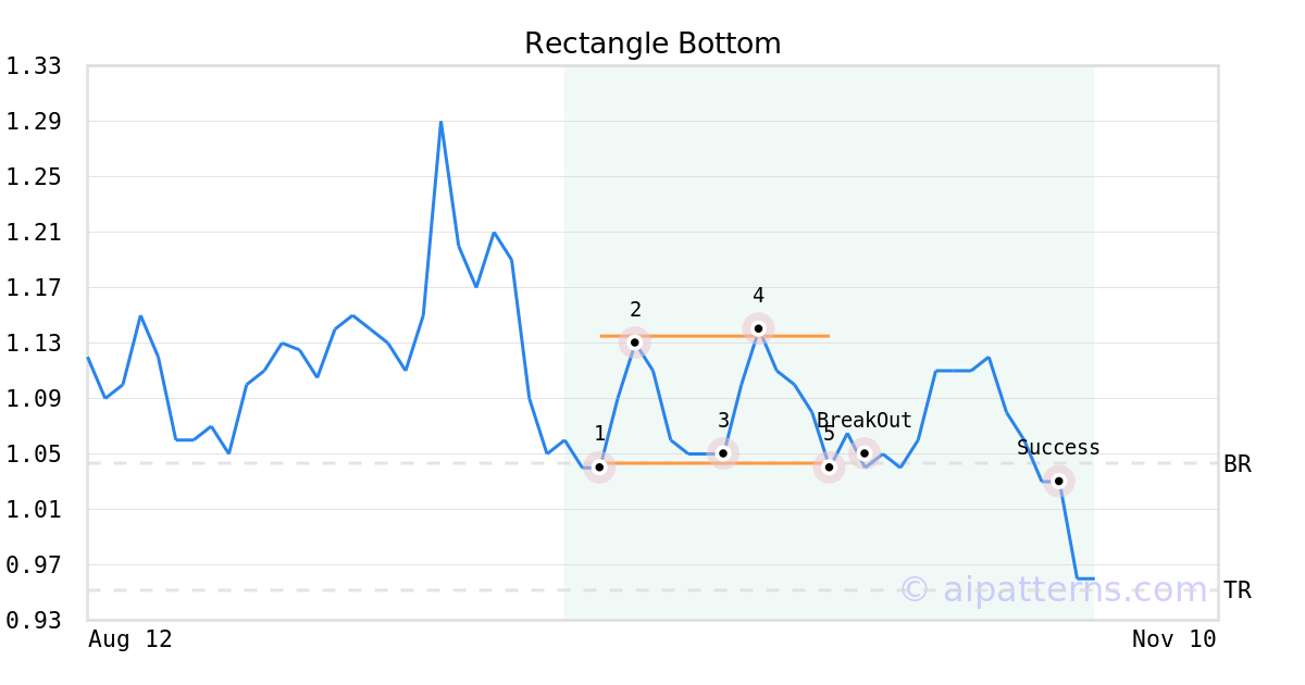 On October 10, 2025, A.I.dvisor detected a Rectangle Bottom Pattern (Bearish) for Trio Petroleum Corp (TPET, $1.04). 4 days later, on October 14, 2025, A.I.dvisor confirmed the Bearish pattern, setting a target price of the stock. On October 29, 2025, the stock hit the target price of $0.95 – resulting in a gain for traders who shorted the stock on the pattern detection date.