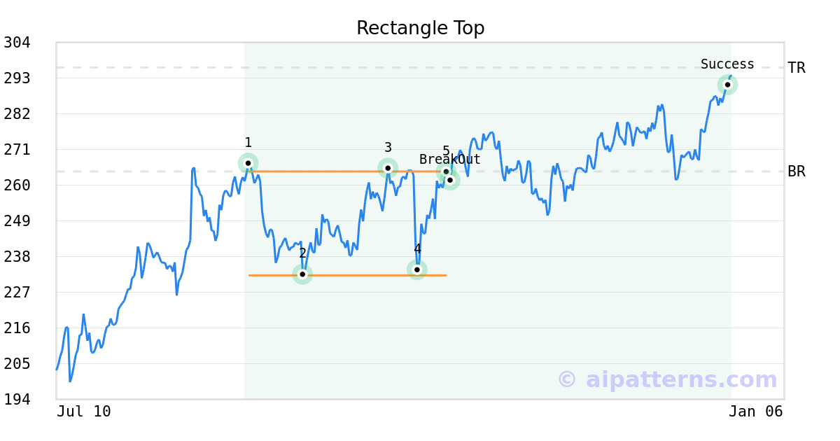 On April 29, 2025, A.I.dvisor detected a Rectangle Top Pattern (Bullish) for Travelers Companies (The) (TRV, $261.91). On May 01, 2025, A.I.dvisor confirmed the Bullish pattern, setting a target price of $296.23. 207 days later, on November 24, 2025, TRV reached the target price resulting in a +1 for traders who took a long position in the stock.