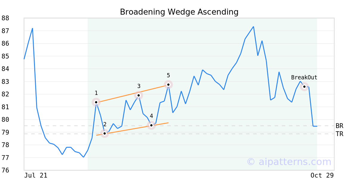 On September 08, 2025, A.I.dvisor detected a Broadening Wedge Ascending Pattern (Bearish) for Textron (TXT, $82.72). 44 days later, on October 22, 2025, A.I.dvisor confirmed the Bearish pattern, setting a target price of the stock. On October 22, 2025, the stock hit the target price of $78.87 – resulting in a gain for traders who shorted the stock on the pattern detection date.