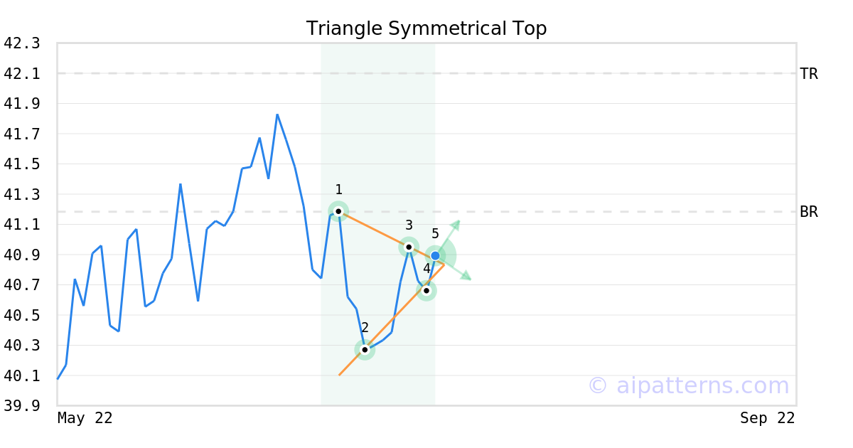 A.I.dvisor detected a bullish Triangle Symmetrical Top pattern for UTHY stock. This pattern was detected on July 25, 2025 . The odds of reaching the target price are 6.