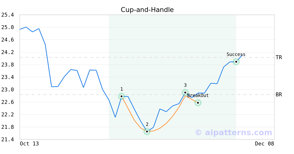 On November 20, 2025, A.I.dvisor detected a Cup-and-Handle Pattern (Bullish) for Global X MSCI Vietnam ETF (VNAM, $22.57). On November 20, 2025, A.I.dvisor confirmed the Bullish pattern, setting a target price of $24.03. 11 days later, on December 01, 2025, VNAM reached the target price resulting in a for traders who took a long position in the stock.