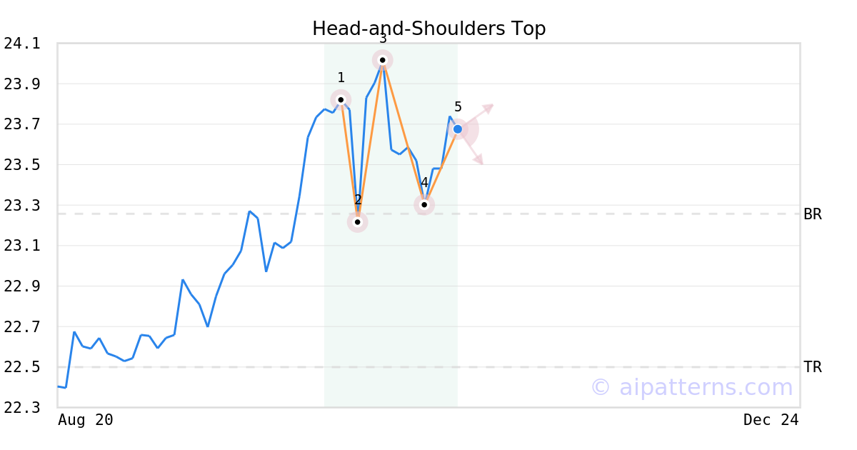 A.I.dvisor detected a bearish Head-and-Shoulders Top pattern for WBIG stock. This pattern was detected on October 28, 2025 . The odds of reaching the target price are 6.