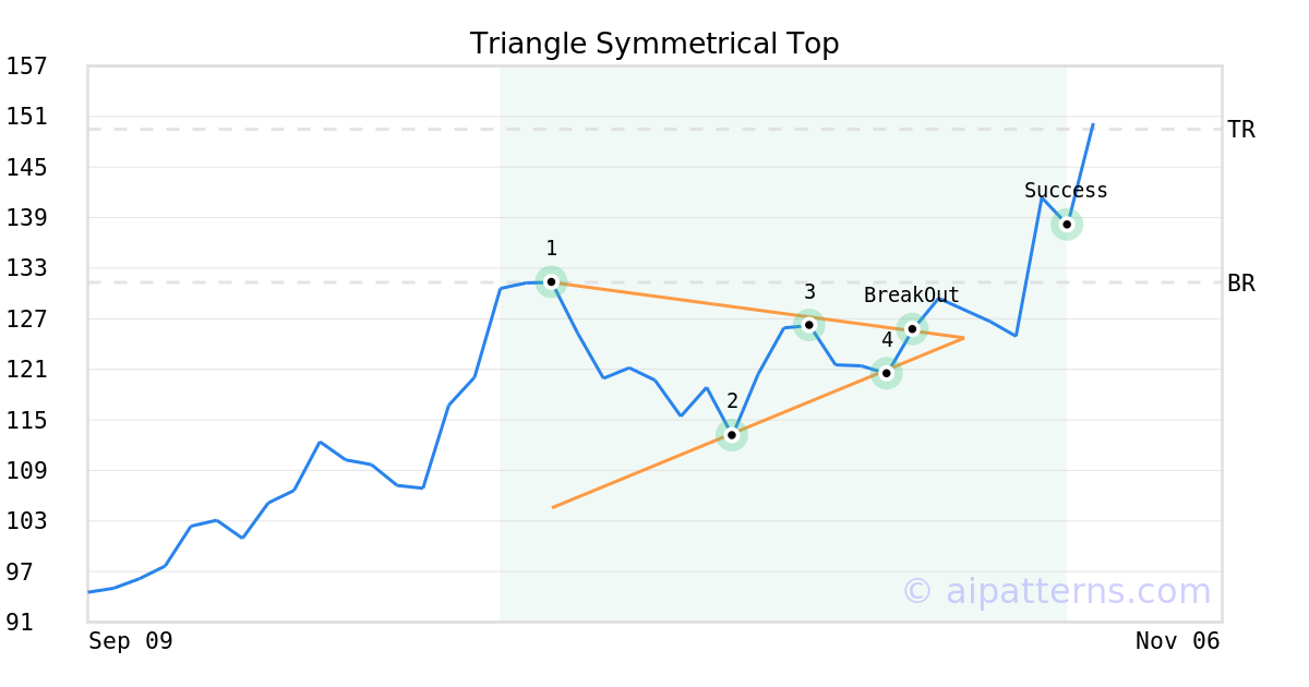 On October 23, 2025, A.I.dvisor detected a Triangle Symmetrical Top Pattern (Bullish) for Western Digital Corp (WDC, $125.72). On October 23, 2025, A.I.dvisor confirmed the Bullish pattern, setting a target price of $149.49. 7 days later, on October 30, 2025, WDC reached the target price resulting in a for traders who took a long position in the stock.