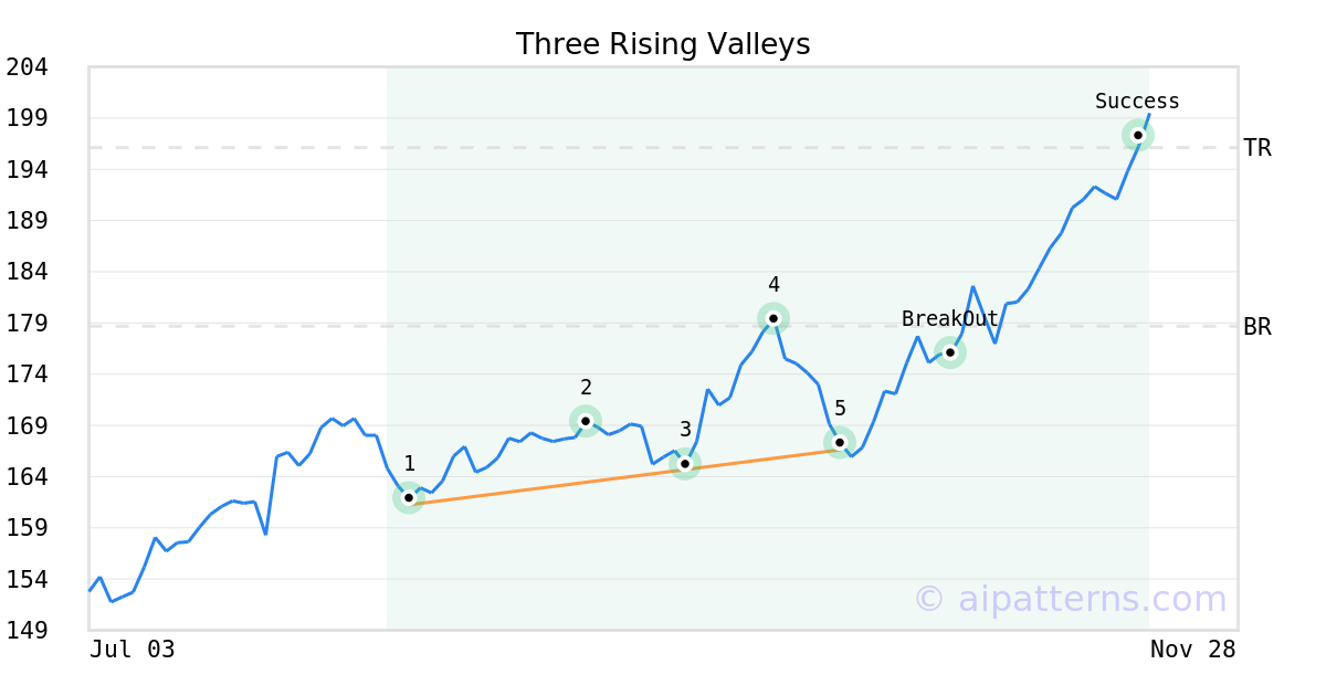 On October 09, 2025, A.I.dvisor detected a Three Rising Valleys Pattern (Bullish) for Welltower (WELL, $166.62). On October 23, 2025, A.I.dvisor confirmed the Bullish pattern, setting a target price of $196.11. 25 days later, on November 17, 2025, WELL reached the target price resulting in a +1 for traders who took a long position in the stock.