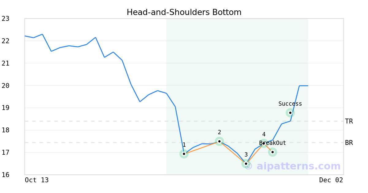 On November 20, 2025, A.I.dvisor detected a Head-and-Shoulders Bottom Pattern (Bullish) for Warby Parker (WRBY, $17.01). On November 20, 2025, A.I.dvisor confirmed the Bullish pattern, setting a target price of $18.40. 4 days later, on November 24, 2025, WRBY reached the target price resulting in a +1 for traders who took a long position in the stock.