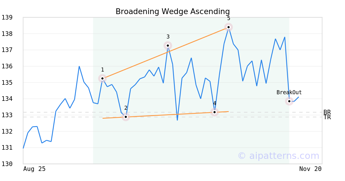 On October 27, 2025, A.I.dvisor detected a Broadening Wedge Ascending Pattern (Bearish) for Invesco S&P MidCap Momentum ETF (XMMO, $138.39). 17 days later, on November 13, 2025, A.I.dvisor confirmed the Bearish pattern, setting a target price of the stock. On November 13, 2025, the stock hit the target price of $132.88 – resulting in a gain for traders who shorted the stock on the pattern detection date.