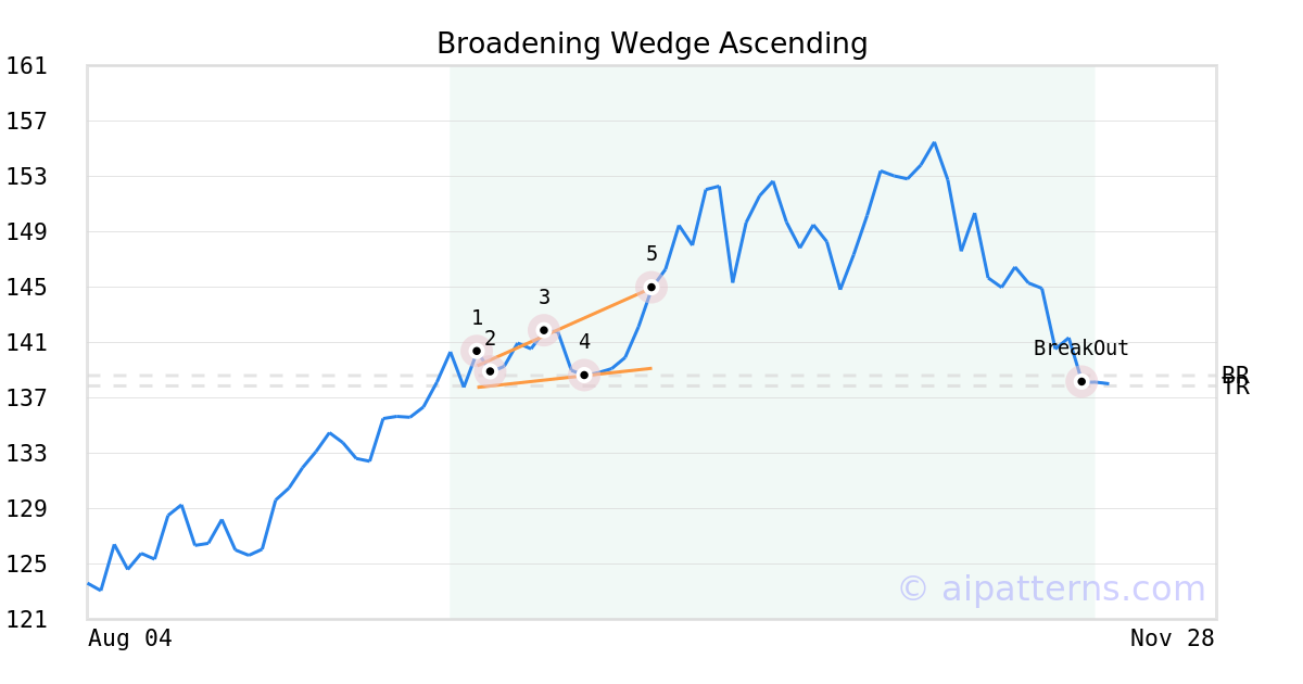 On October 02, 2025, A.I.dvisor detected a Broadening Wedge Ascending Pattern (Bearish) for State Street® SPDR® S&P® Telecom ETF (XTL, $144.96). 46 days later, on November 17, 2025, A.I.dvisor confirmed the Bearish pattern, setting a target price of the stock. On November 17, 2025, the stock hit the target price of $137.87 – resulting in a gain for traders who shorted the stock on the pattern detection date.