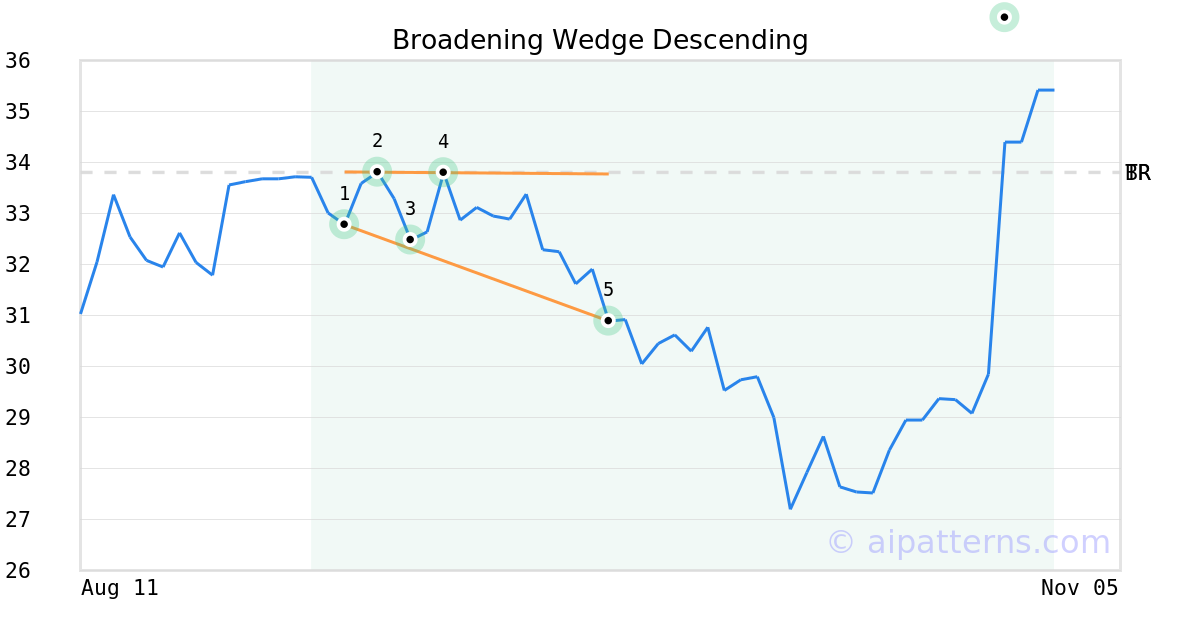 On September 25, 2025, A.I.dvisor detected a Broadening Wedge Descending Pattern (Bullish) for Olympic Steel (ZEUS, $30.89). On October 29, 2025, A.I.dvisor confirmed the Bullish pattern, setting a target price of $33.81. On October 29, 2025, ZEUS reached the target price resulting in a +1 for traders who took a long position in the stock.
