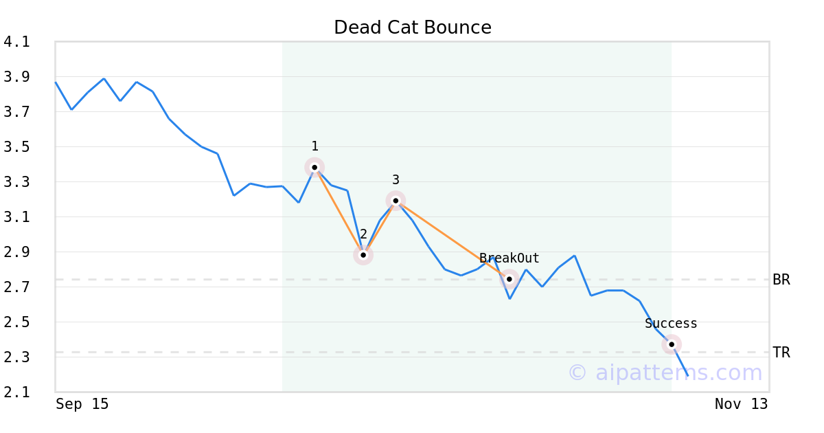 On October 23, 2025, A.I.dvisor detected a Dead Cat Bounce Pattern (Bearish) for ZJK Industrial Co Ltd (ZJK, $2.74). On October 23, 2025, A.I.dvisor confirmed the Bearish pattern, setting a target price of the stock. On November 06, 2025, the stock hit the target price of $2.33 – resulting in a +1 gain for traders who shorted the stock on the pattern detection date.