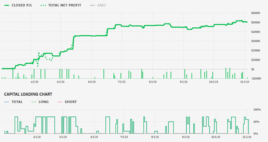 ISTANBUL—Nov. 5, 2025 - PRLog -- In today’s volatile trading landscape, Tickeron’s AI Trading Double Agent has delivered standout results—posting a +82% annualized return and $50,196 in closed trade profits over 246 days. Using a smart hedging approach that pairs long positions in Advanced Micro Devices (AMD) with the inverse ETF AMDS, this 15-minute AI robot transforms downturns into profit opportunities, proving the effectiveness of AI-powered risk management.