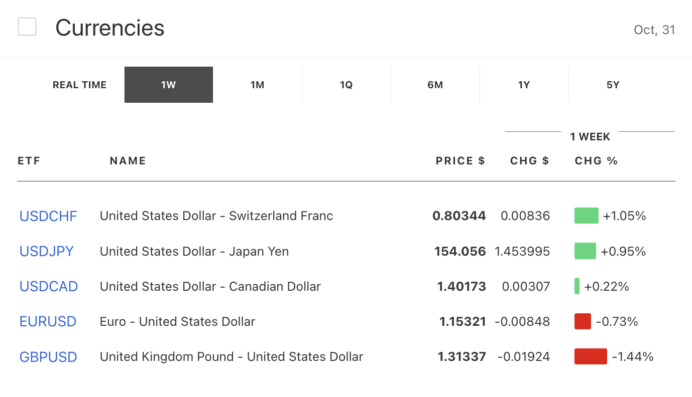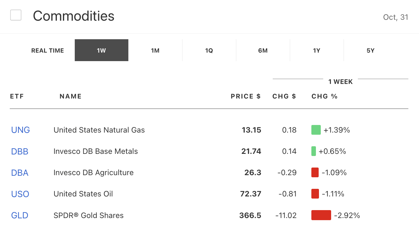 Oil (USO): Crude oil prices stabilized during the week as concerns about geopolitical shocks eased with the U.S.-China trade agreement. U.S. crude oil declined modestly from earlier highs to approximately $60-61 per barrel by week's end, with Brent crude at approximately $63.95, reflecting stable global demand assumptions and lack of supply disruption threats.